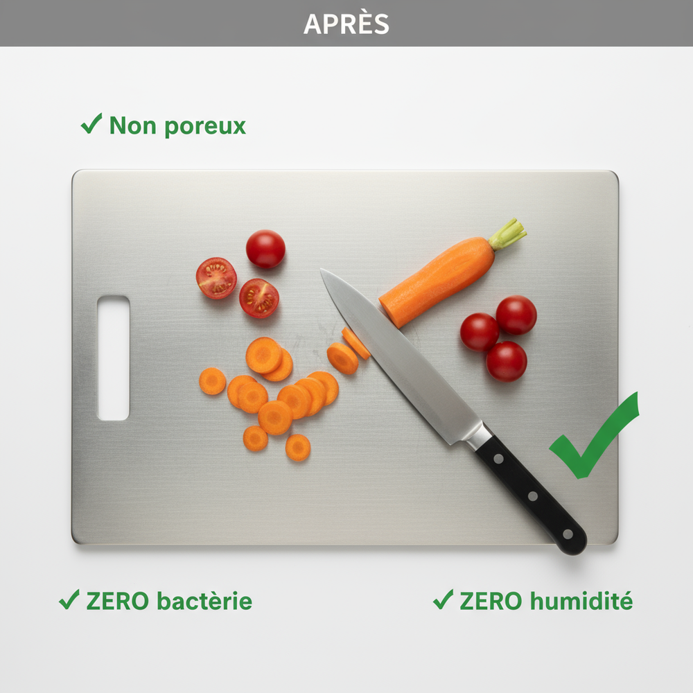 🍽️ La planche à découper en titane Geva est votre protection ultime contre les bactéries cachées, les odeurs persistantes et les toxines nocives.