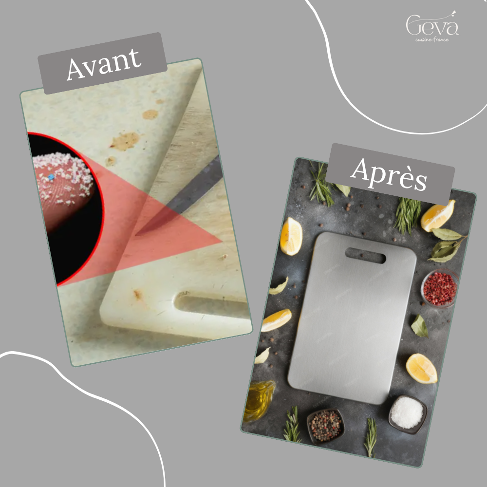 🍽️ La planche à découper en titane Geva est votre protection ultime contre les bactéries cachées, les odeurs persistantes et les toxines nocives.