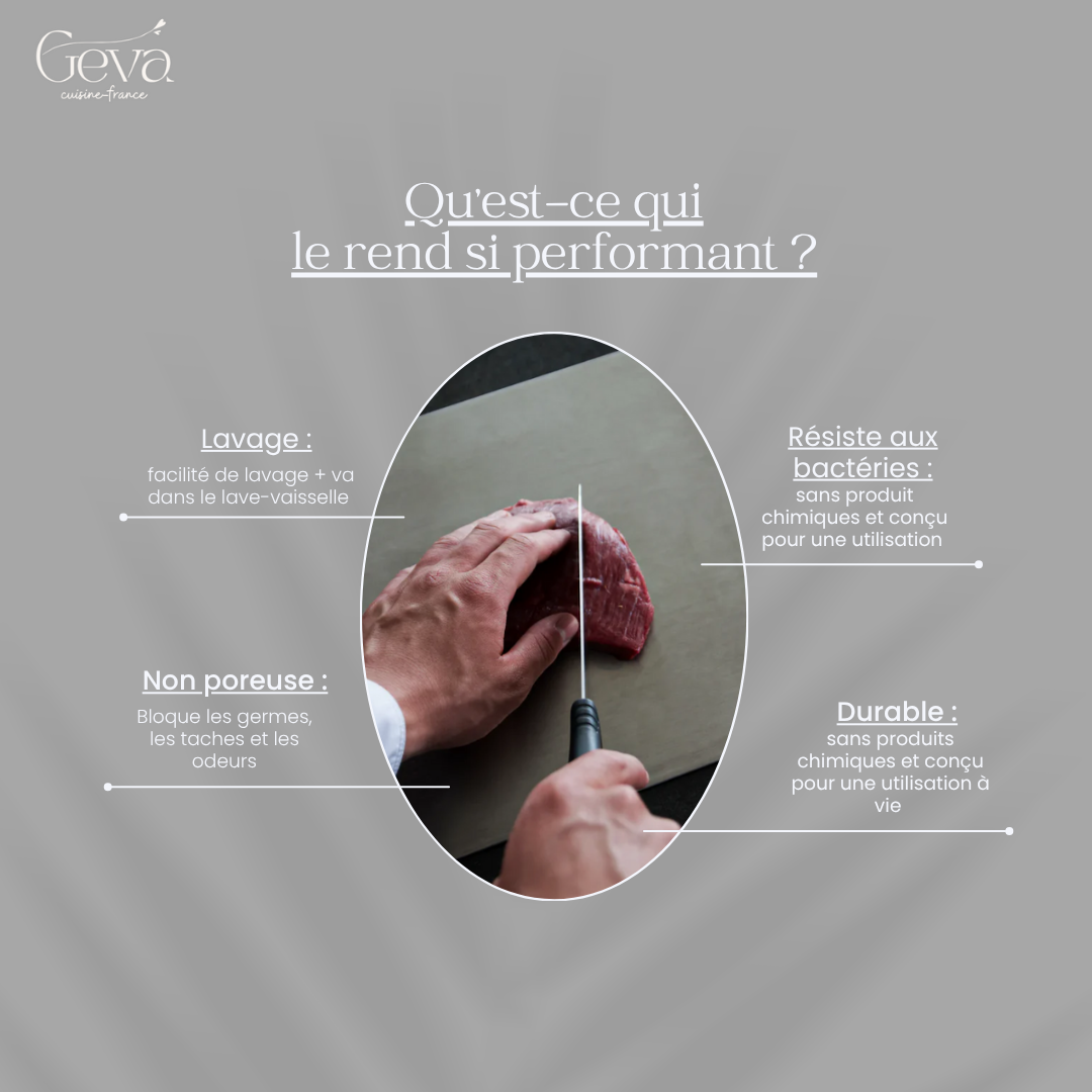 « Enfin une planche à découper qui ne sent pas les oignons de la veille ! Elle est tellement plus propre que mon ancienne planche en bois. »