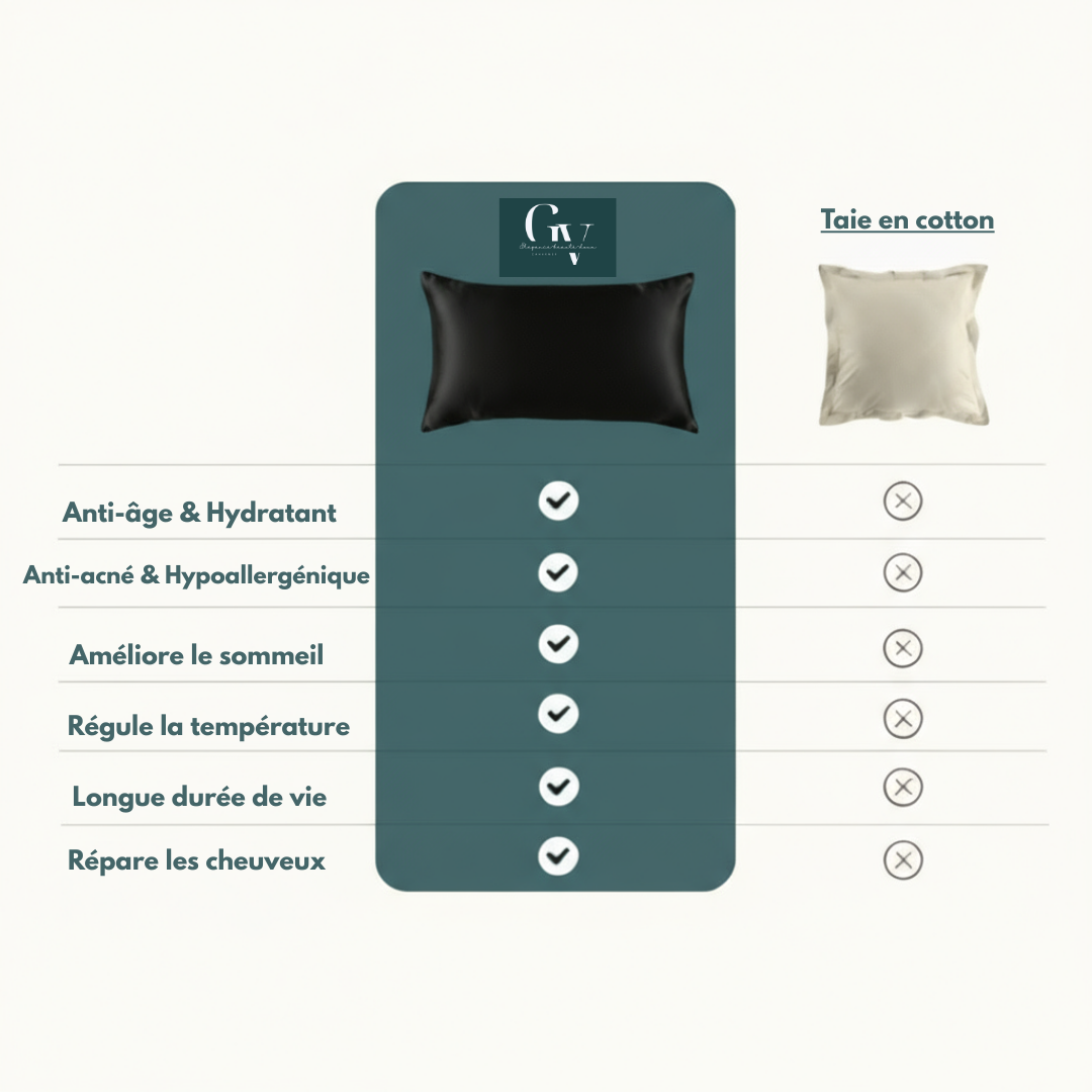 ☁️ Douceur Absolue : Nos taies d'oreiller en soie de mûrier offrent un toucher doux et luxueux pour des nuits réparatrices.
